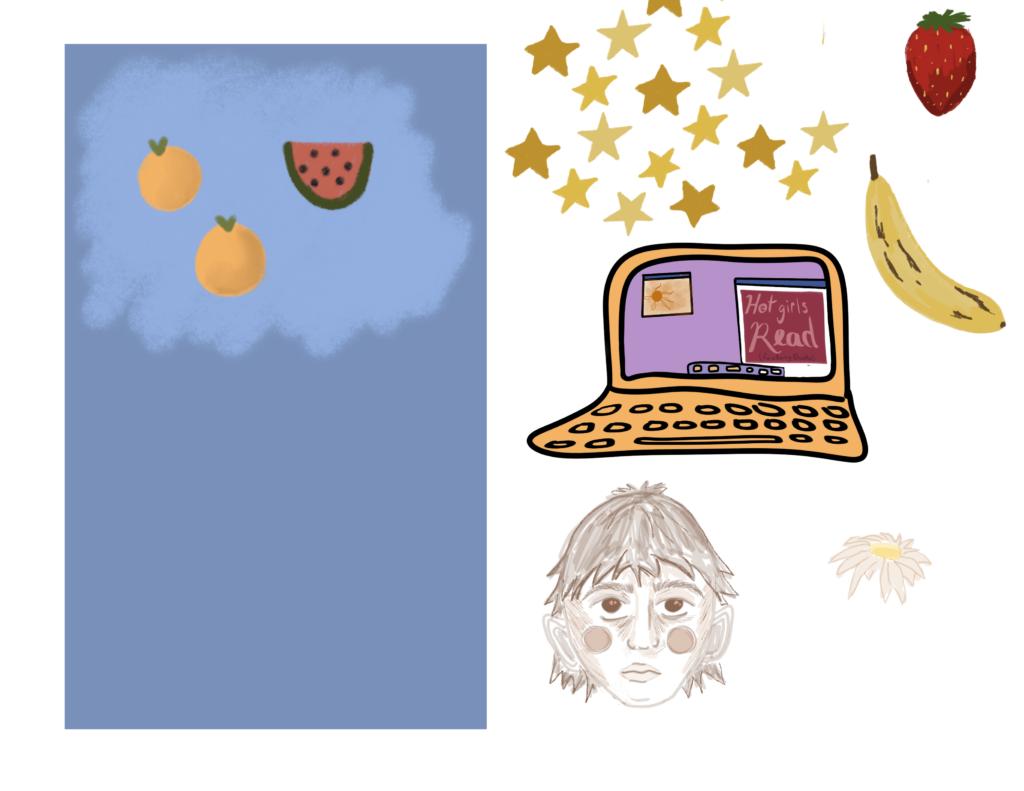 I think this piece is the one im most proud of and found the most fun to draw! in terms of growth in my media literacy around drawing on my iPad, I think it was at this point where everything kind of clicked: using separate layers for different brushes, how to shade using pixels, what colours work together, how to select areas and resize them, and just all the small things ive been learning started to pay off!