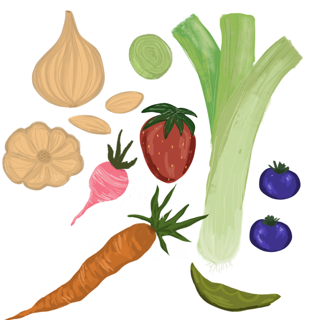 this is my current sort of sketch pad of produce ive been doing this week, and ive been trying to play around with the Eric carle art style of collage-esk art but not really, and I like how simple yet detailed these veggies look! I also began to understand how to use the alpha lock setting (it allows for you to draw on a layer without going outside the lines, very useful for shading) and I can see my art getting better everyday!